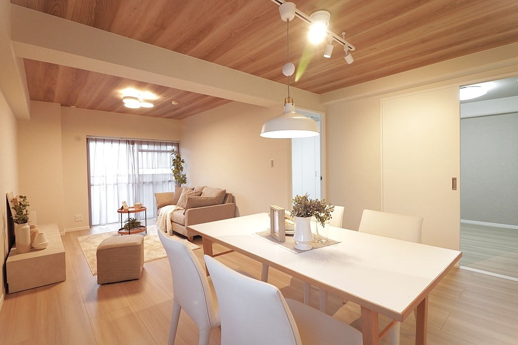 設置されている家具・小物・照明はディスプレイ用です。家具・照明付き販売ではございません。